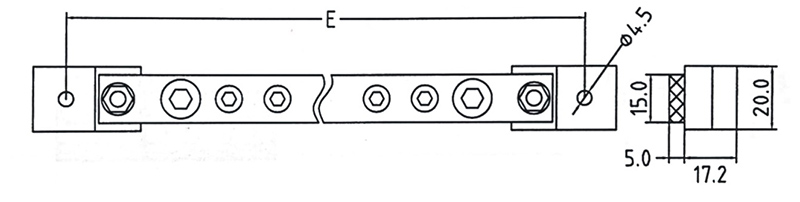 汇流排5x15电镀铜排,电流容量225A,安装孔直径Φ6